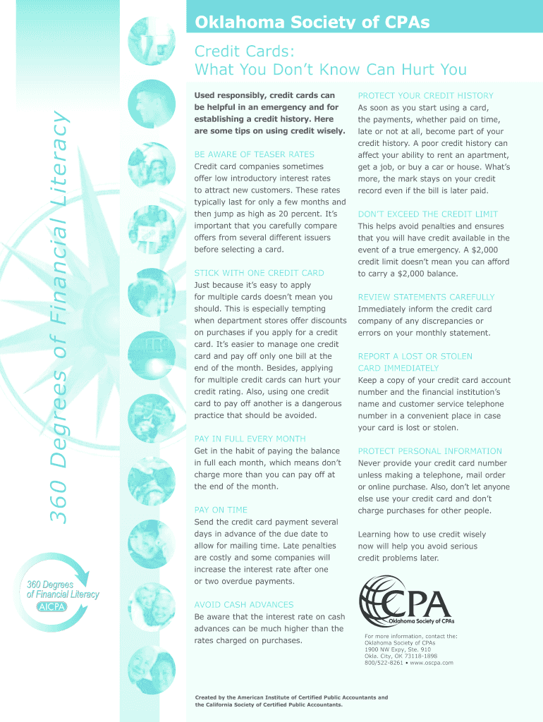 Oklahoma Society of CPA's Credit Cards: What You Don't Know Can Hurt You 360 Degrees of Financial Literacy Used responsibly, credit cards can PROTECT YOUR CREDIT HISTORY be helpful in an emergency