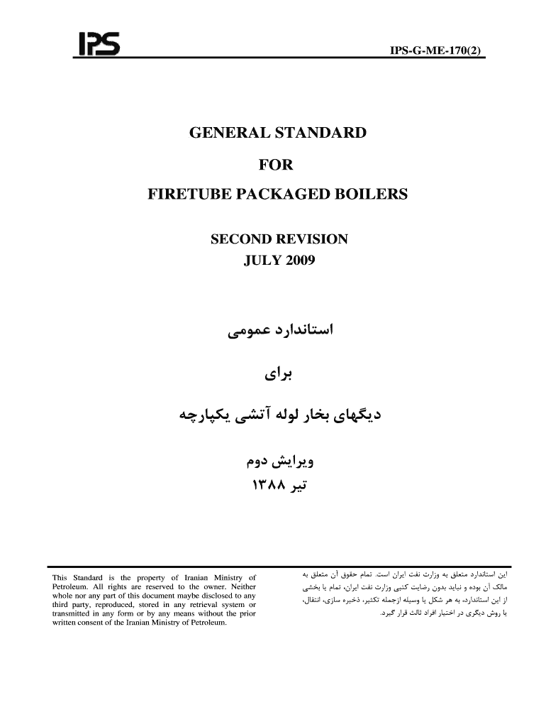 IPS-G-ME-170(2) FOREWORD The Iranian Petroleum Standards (IPS) reflect the views of the Iranian Ministry of Petroleum and are intended for use in the oil and gas production facilities, oil refineries,