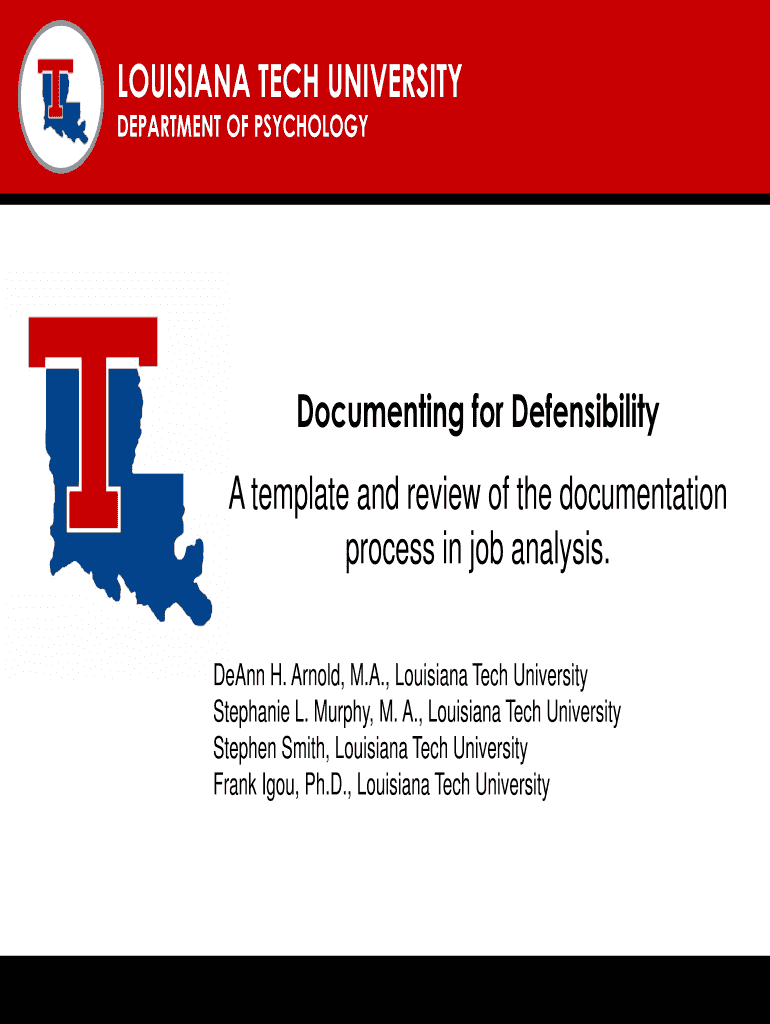 LOUISIANA TECH UNIVERSITY LOUISIANA TECH UNIVERSITY YOUR COLLEGE OR DEPARTMENT NAME HERE DEPARTMENT OF PSYCHOLOGY INTRODUCTION JOB ANALYSIS Introduction LITERATURE REVIEW Job Analysis METHODS CONCLUSION