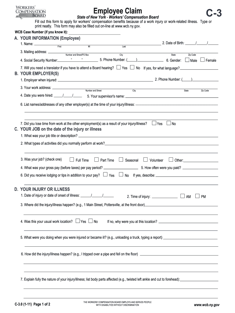 STATE OF NEW YORK WORKERS COMPENSATION BOARD 100 BROADWAYMENANDS ALBANY, NY 12241 (877) 6324996 You were injured at work. What now? The New York State Workers Compensation Board has received notice