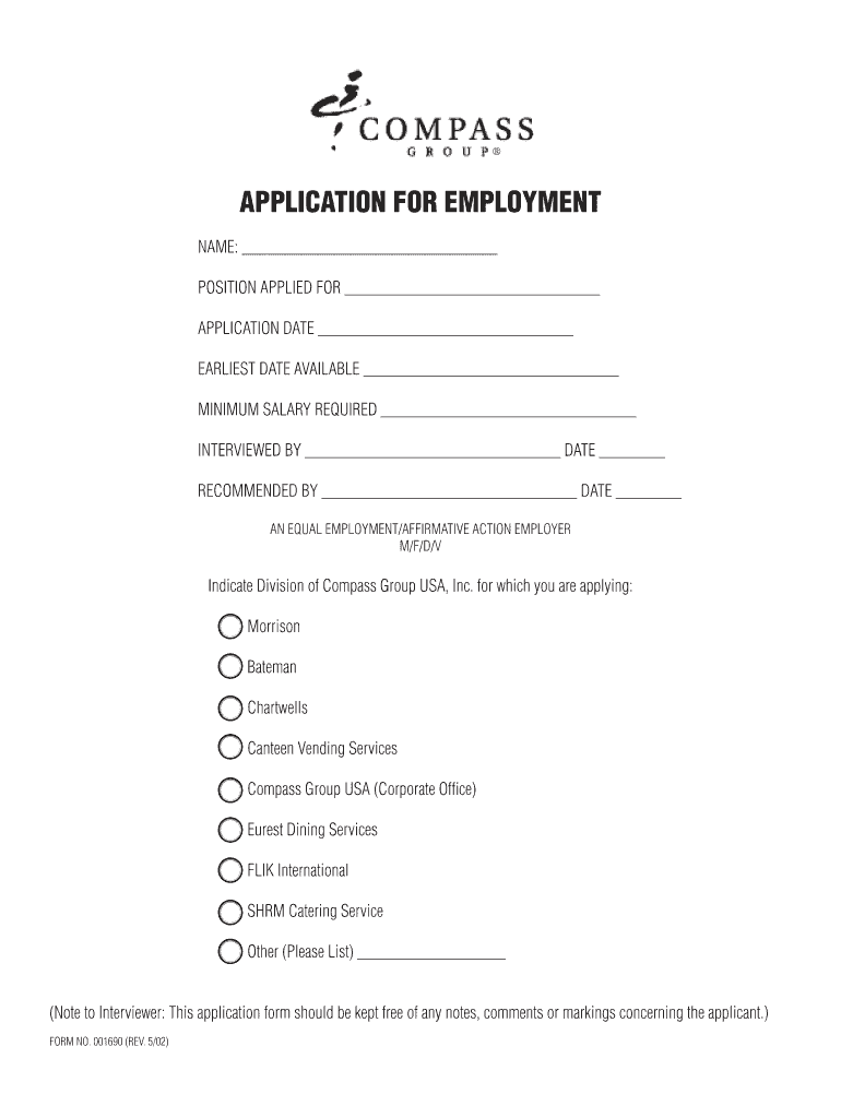 Get the free APPLICATION FOR EMPLOYMENT NAME - DineOnCampus