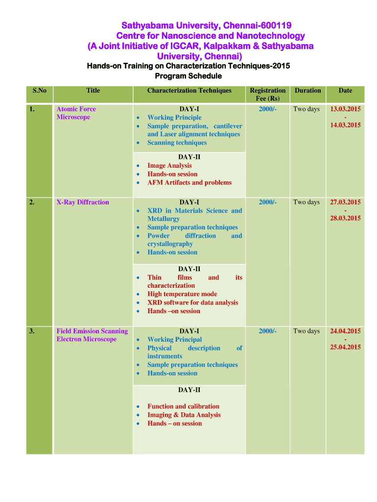 Sathyabama University, Chennai600119 Center for Conscience and Nanotechnology (A Joint Initiative of IGC AR, Kalpakkam & Sathyabama University, Chennai) Hanson Training on Characterization Techniques2015
