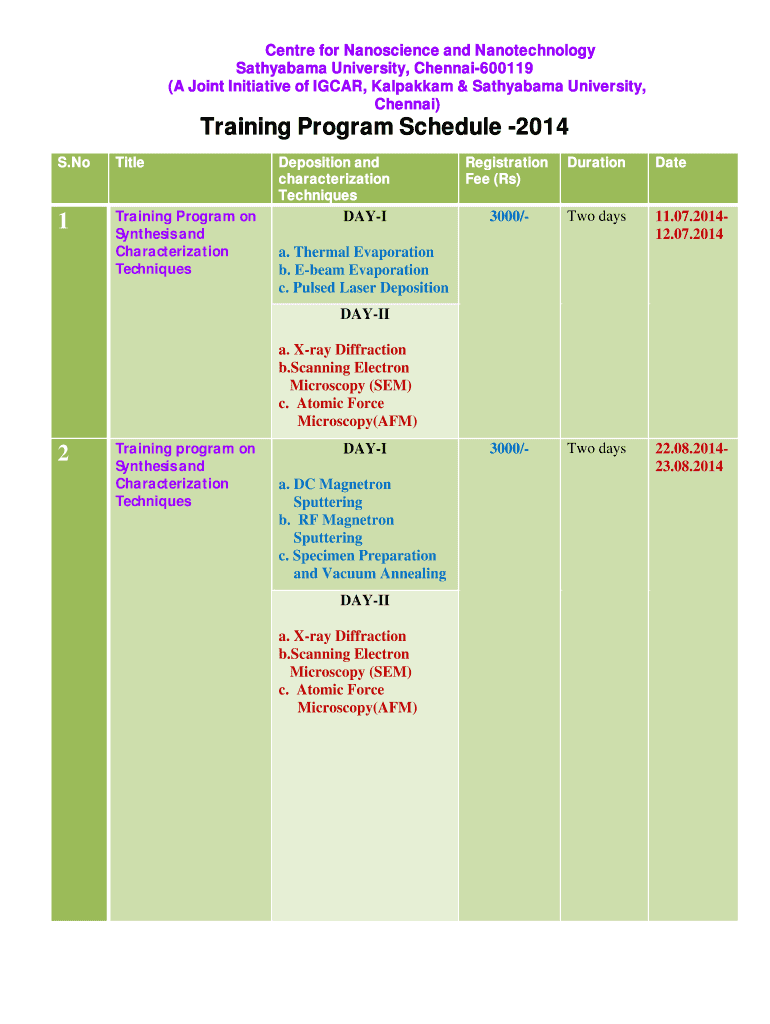 Fill out your training program schedule -2014 online with pdfFiller!