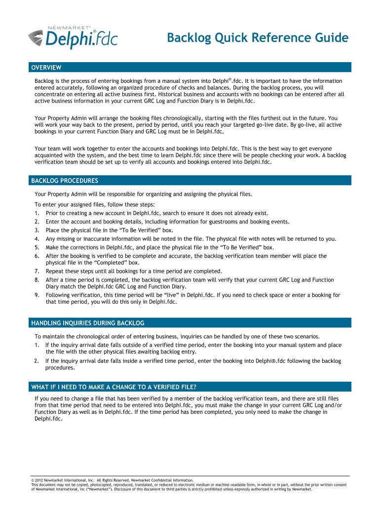 Backlog is the process of entering bookings from a manual system into Delphi.FDC. It is important to have the information