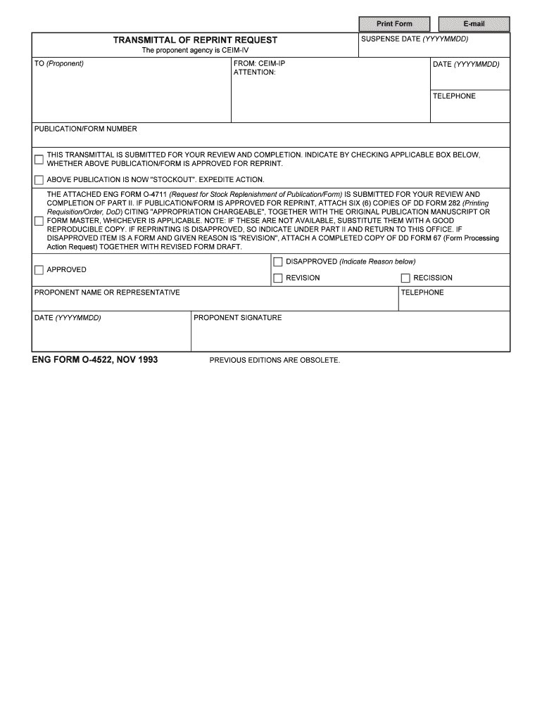 Get the free ENG bFORMb O-4522 Transmittal of Reprint Request NOV b1993b - asktop
