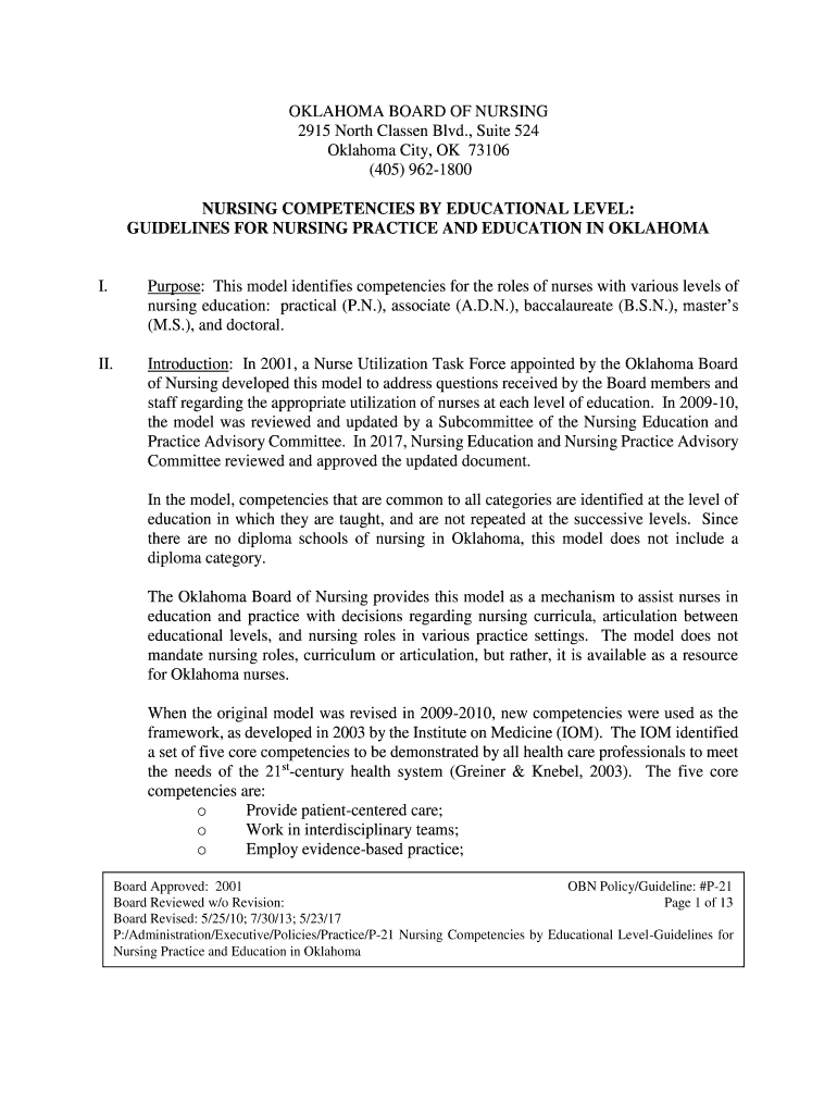 Get the free NURSING COMPETENCIES BY EDUCATIONAL LEVEL: