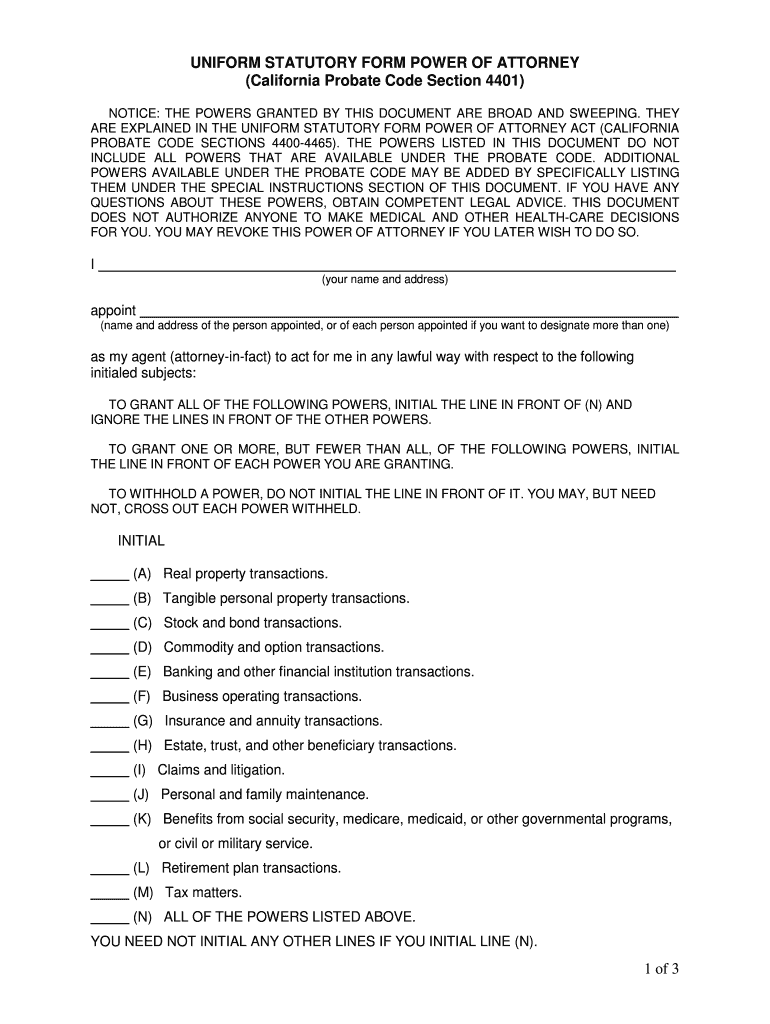 UNIFORM STATUTORY FORM POWER OF ATTORNEY