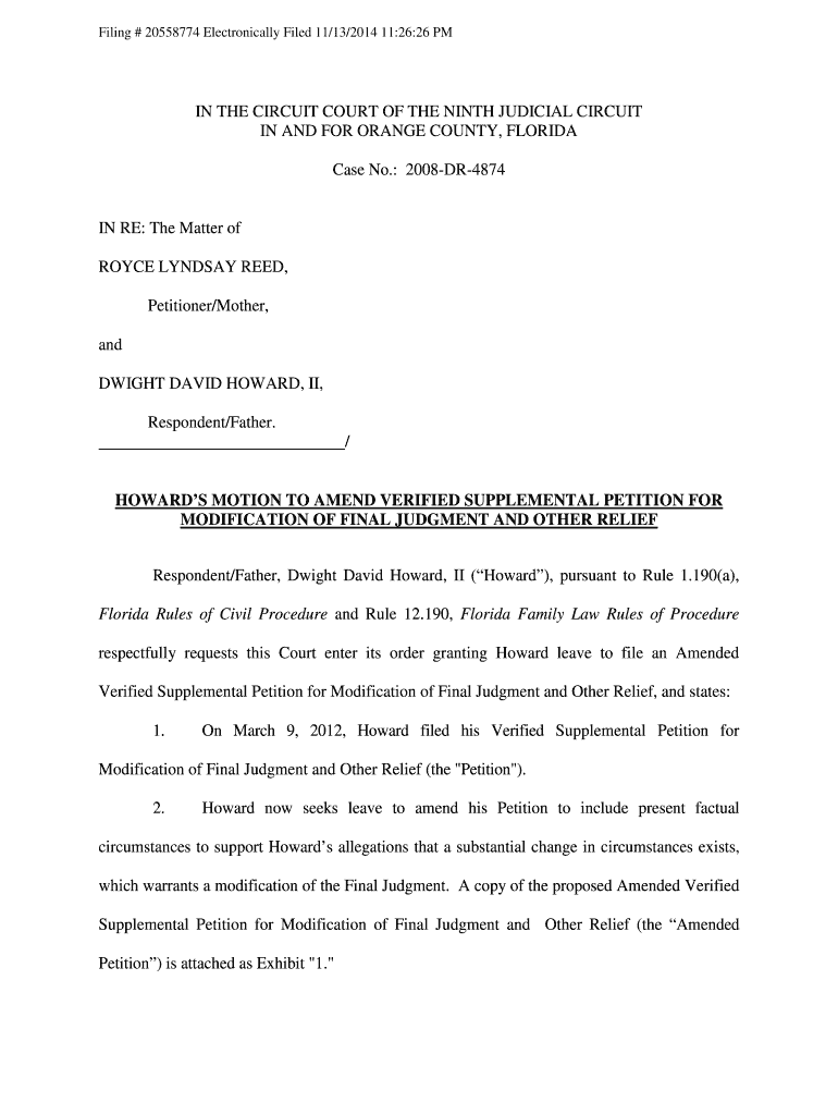 Filing # 20558774 Electronically Filed 11/13/2014 11:26:26 PAIN THE CIRCUIT COURT OF THE NINTH JUDICIAL CIRCUIT