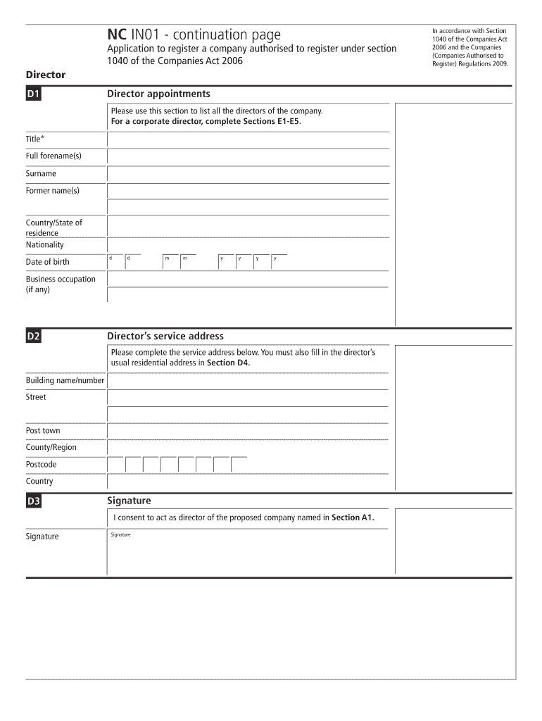 Get the free NC IN01 - continuation page - companieshouse gov