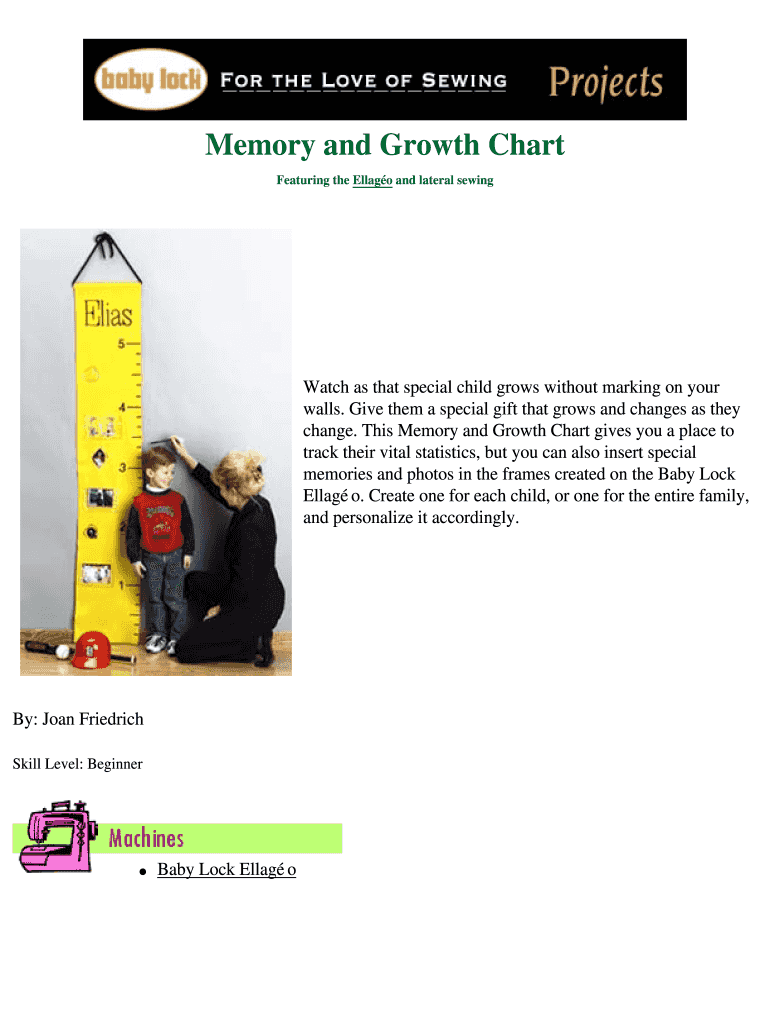 Featuring the Ell ago and lateral sewingWatch as that special child grows without marking on your