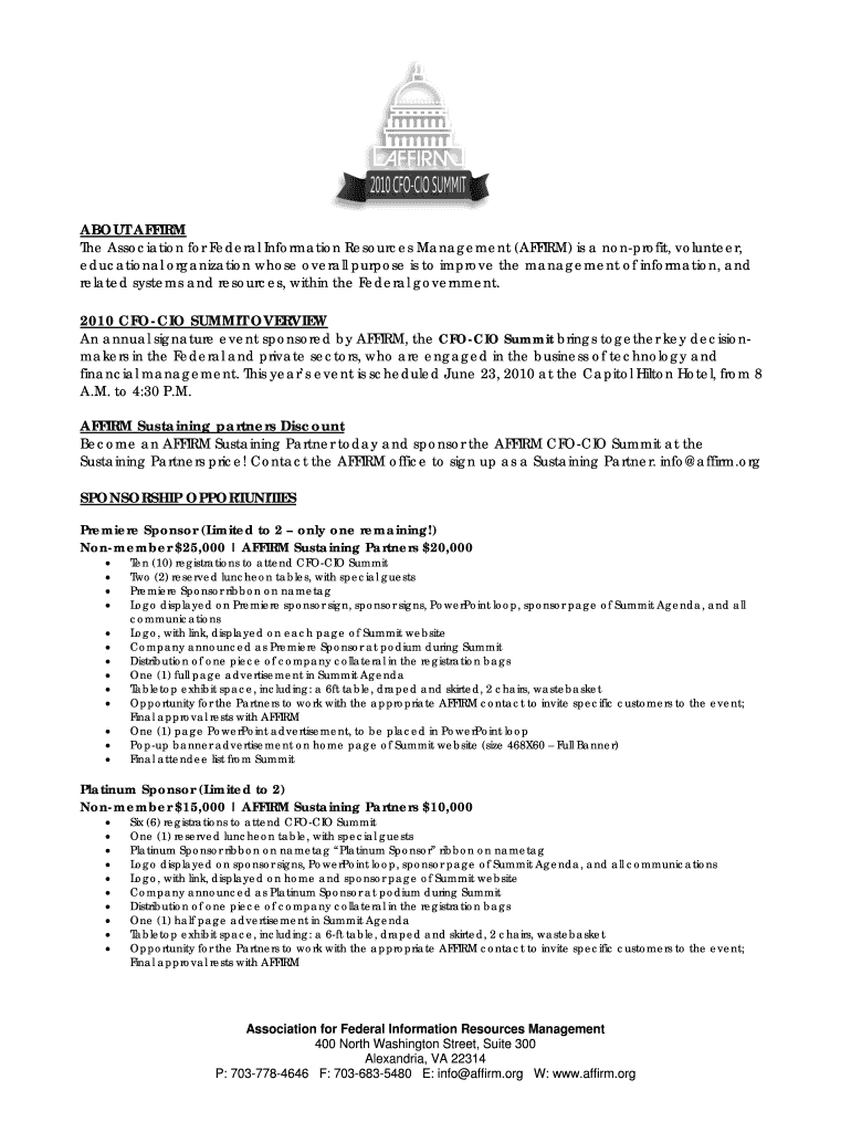 ABOUT AFFIRM The Association for Federal Information Resources Management (AFFIRM) is a nonprofit, volunteer, educational organization whose overall purpose is to improve the management of information,