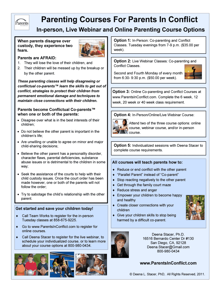 Parents who are going through or have gone through a divorce or custody proceedings may be required by the court to attend parenting courses.