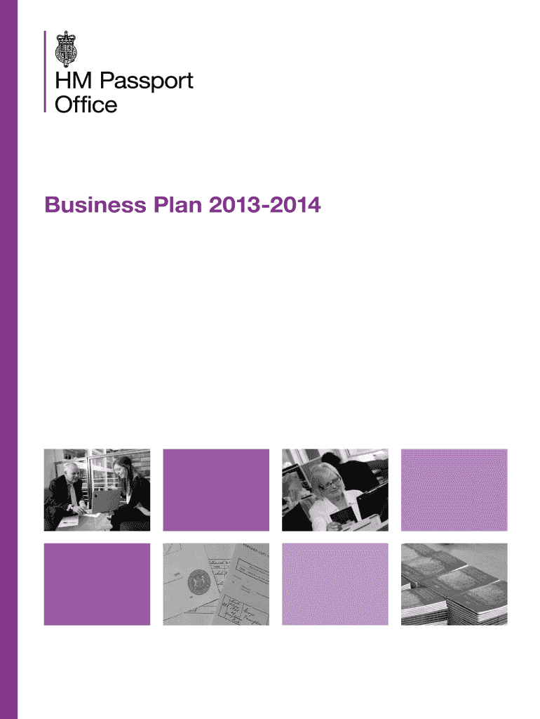 El plan de negocios de la Oficina de Pasaportes de Su Majestad para 2013-2014 detalla su propósito, estructura organizativa y prioridades operativas, incluyendo la mejora del servicio al cliente