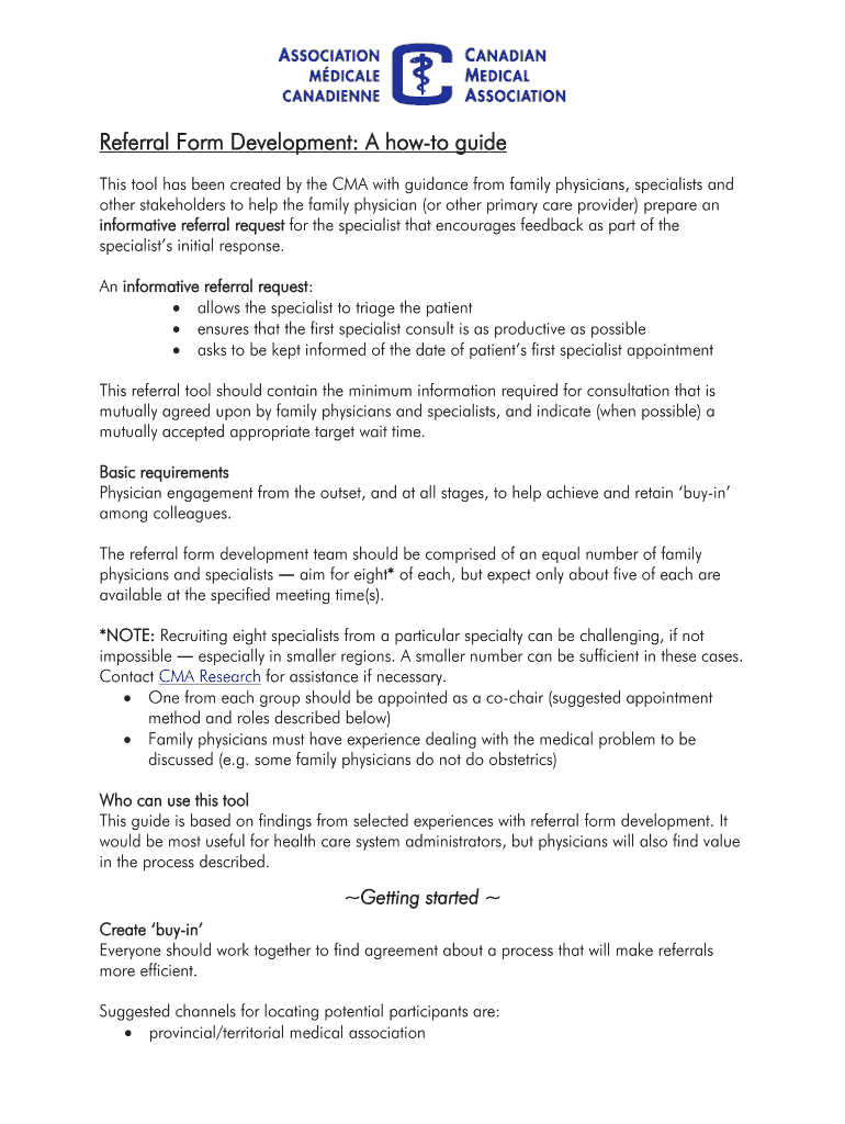 This tool has been created by the CMA with guidance from family physicians, specialists and