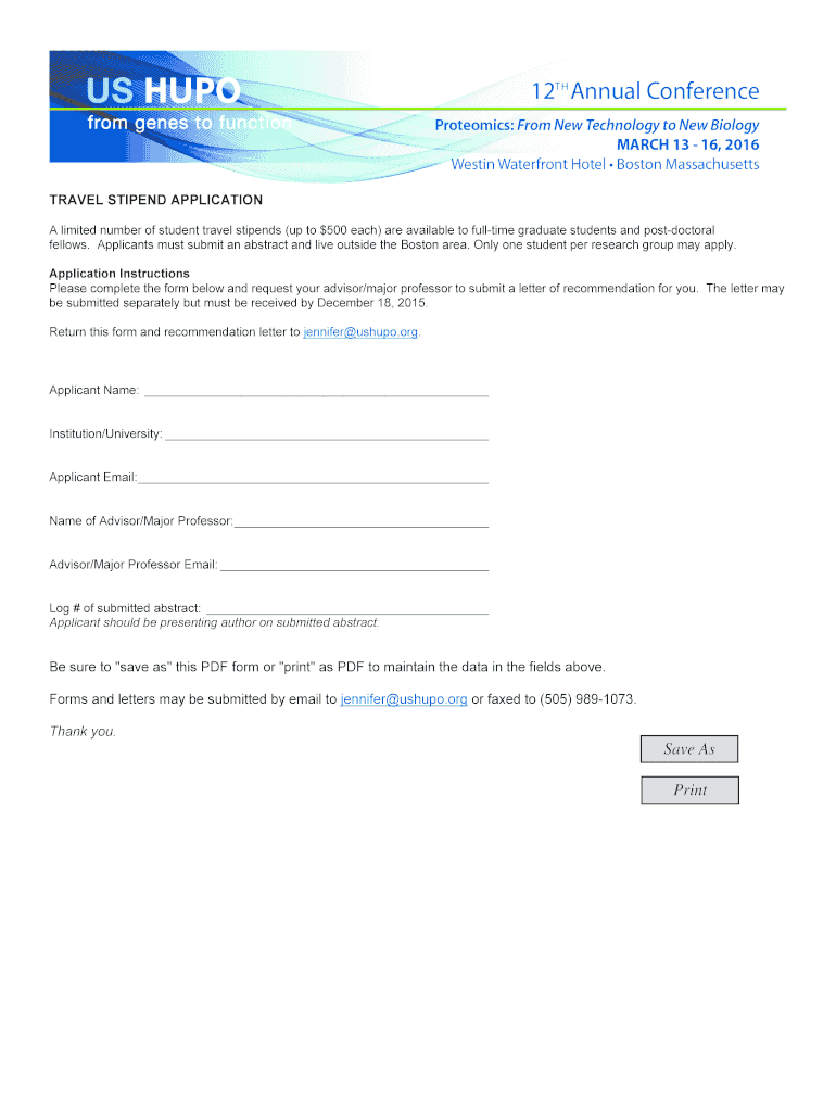 Get the free TRAVEL STIPEND APPLICATION - US HUPO - ushupo