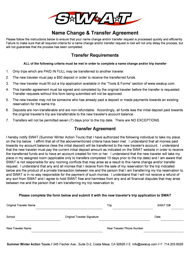 Get the free Name Change amp Transfer Agreement - bswatupcomb