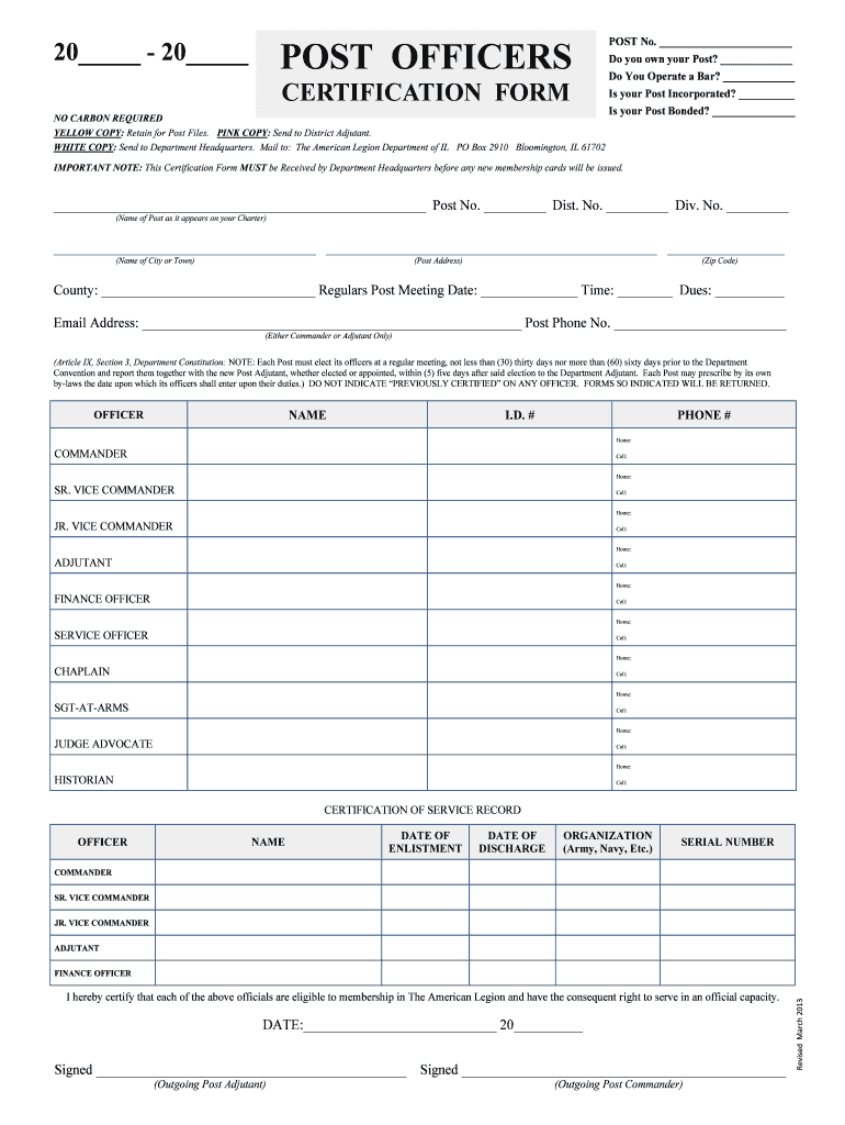 Get the free 20 POST OFFICERS CERTIFICATION FORM Is your Post - illegion