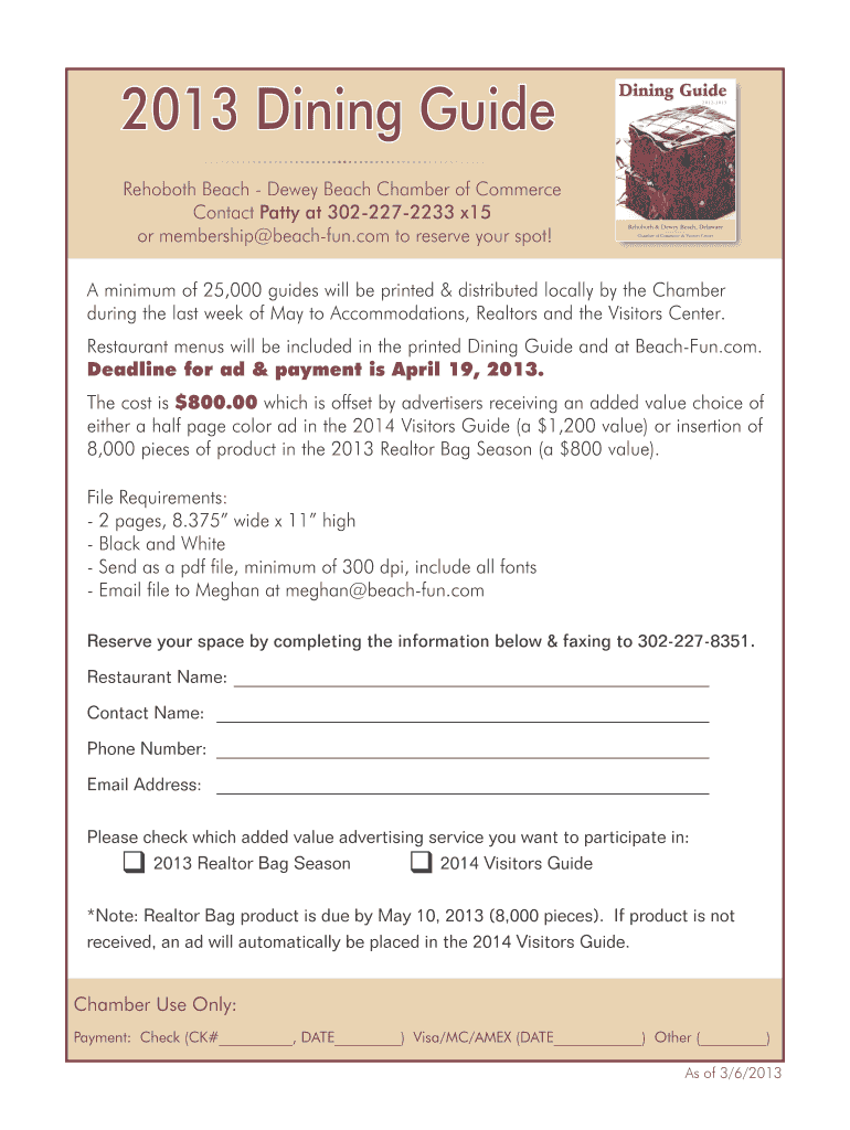 Edit your 2013 dining guide form online