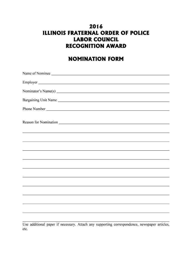 Get the free Nomination Form - The Illinois FOP Labor Council - fop