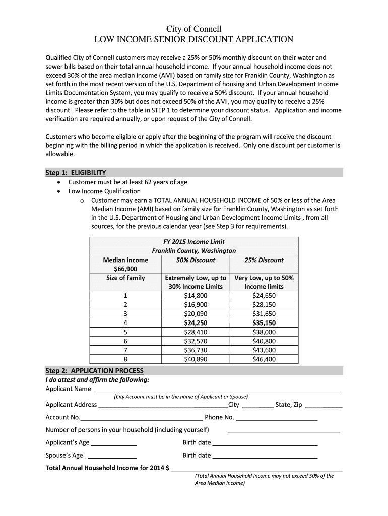 Get the free City of Connell LOW INCOME SENIOR DISCOUNT APPLICATION