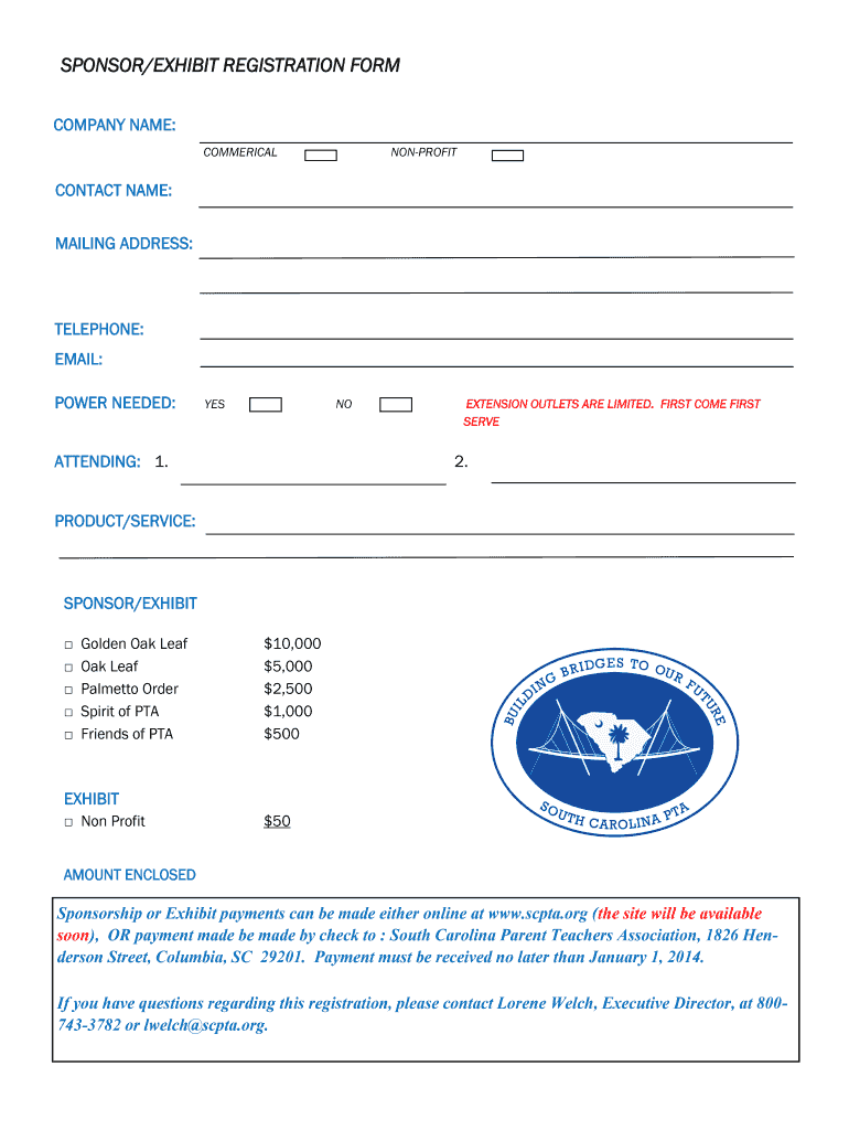Get the free SPONSOREXHIBIT REGISTRATION FORM - scptaorg