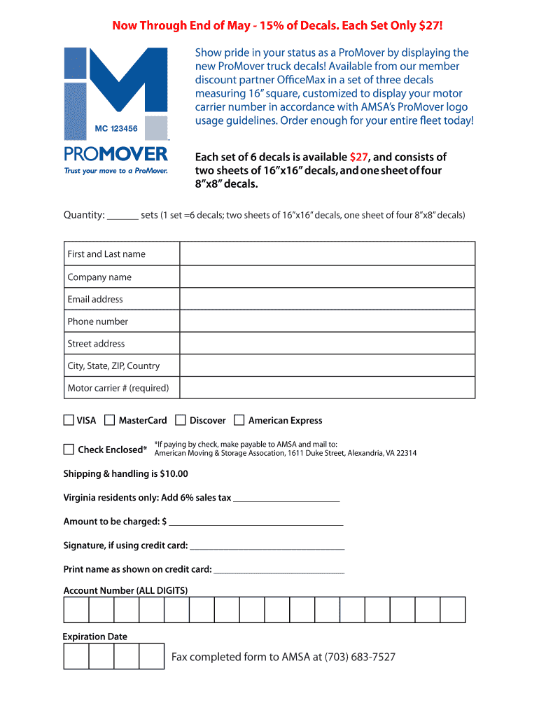 Now Through End of May 15% of Decals. Each Set Only $27! Show pride in your status as a Promoter by displaying the new Promoter truck decals! Available from our member discount partner OfficeMax in