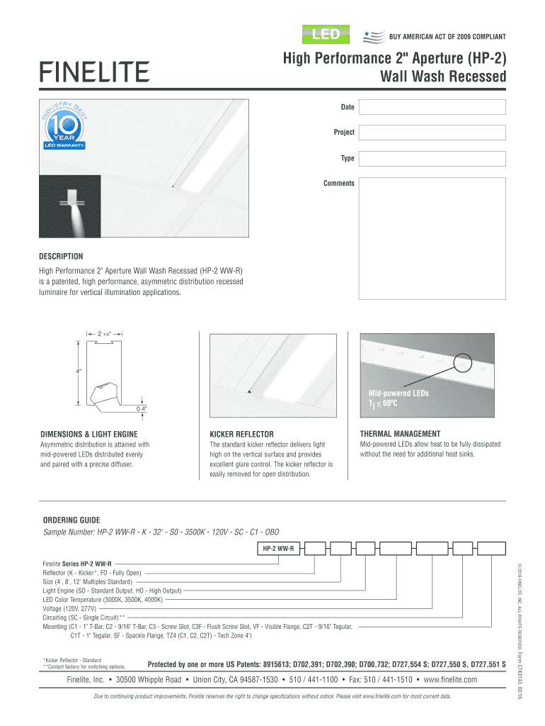 BUY AMERICAN ACT OF 2009 COMPLIANT High Performance 2 Aperture (HP2) Wall Wash Recessed FINITE Date Project Type Comments DESCRIPTION High Performance 2 Aperture Wall Wash Recessed (HP2 WAR) is a