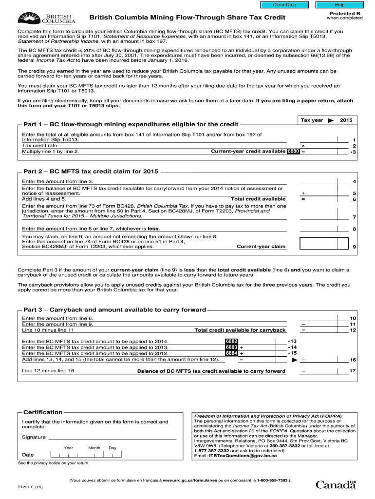 Clear Data Help Protected B British Columbia Mining FlowThrough Share Tax Credit when completed Complete this form to calculate your British Columbia mining flow through share (BC MATS) tax credit.