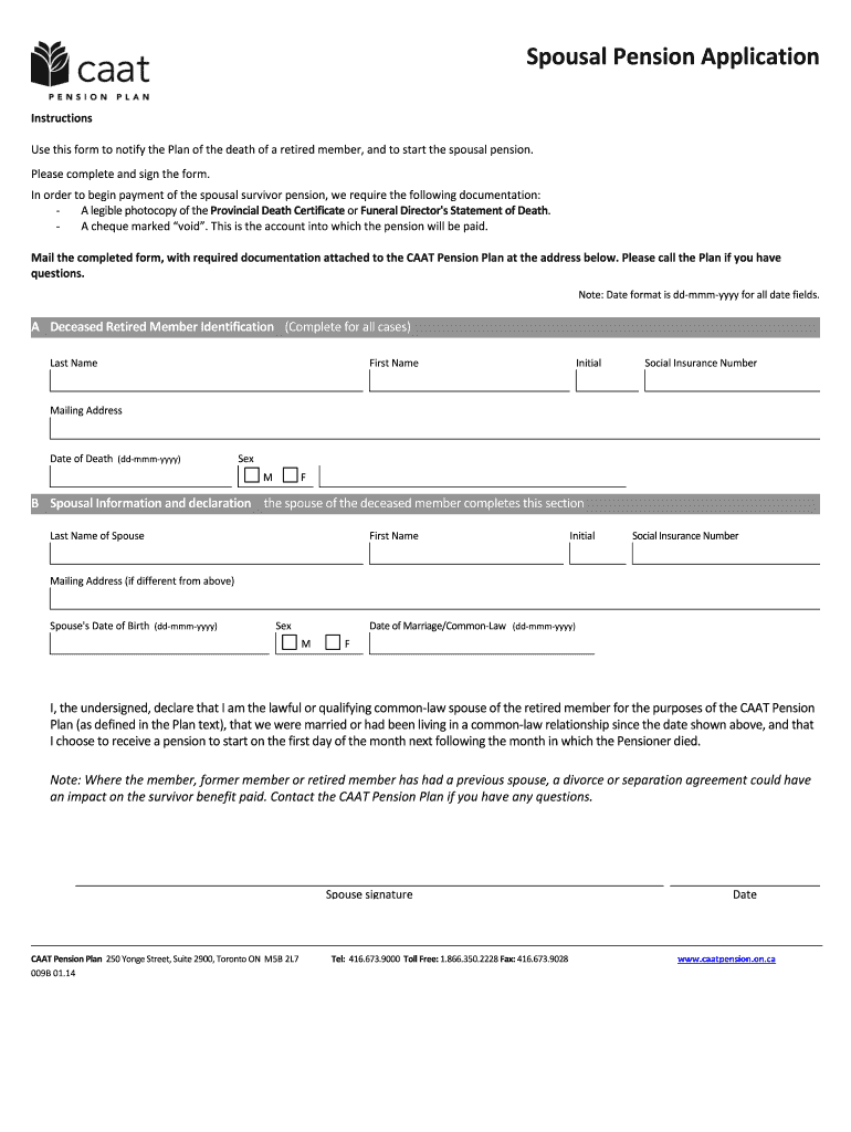 Get the free Spousal Pension Application