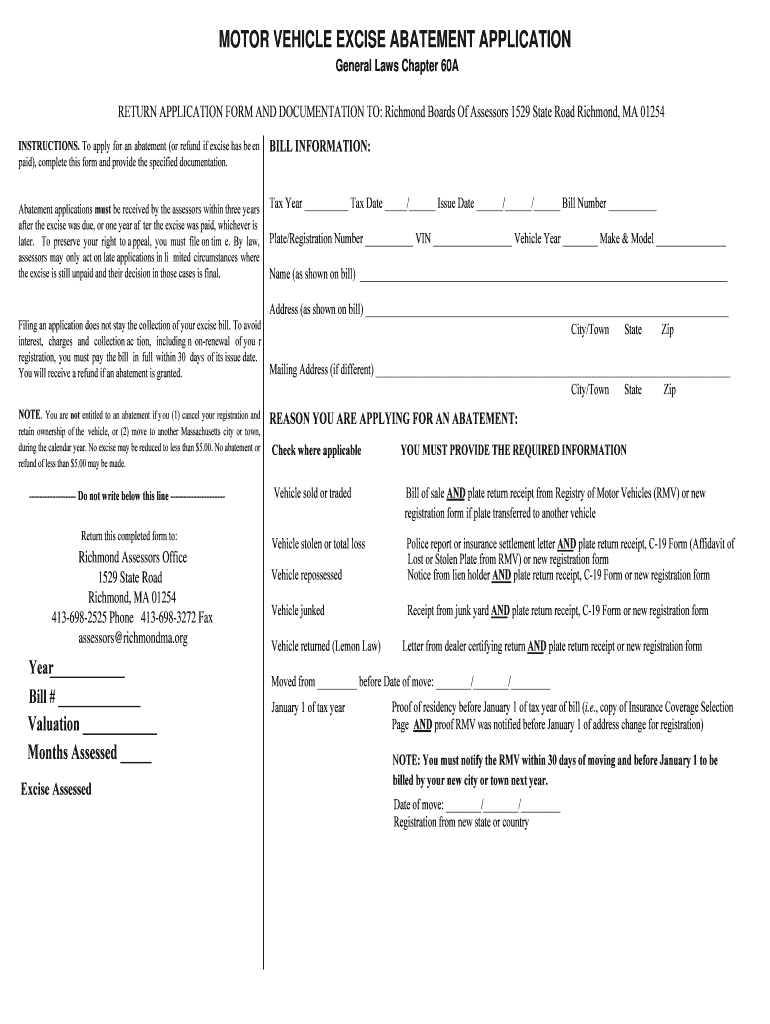 MOTOR VEHICLE EXCISE ABATEMENT APPLICATION