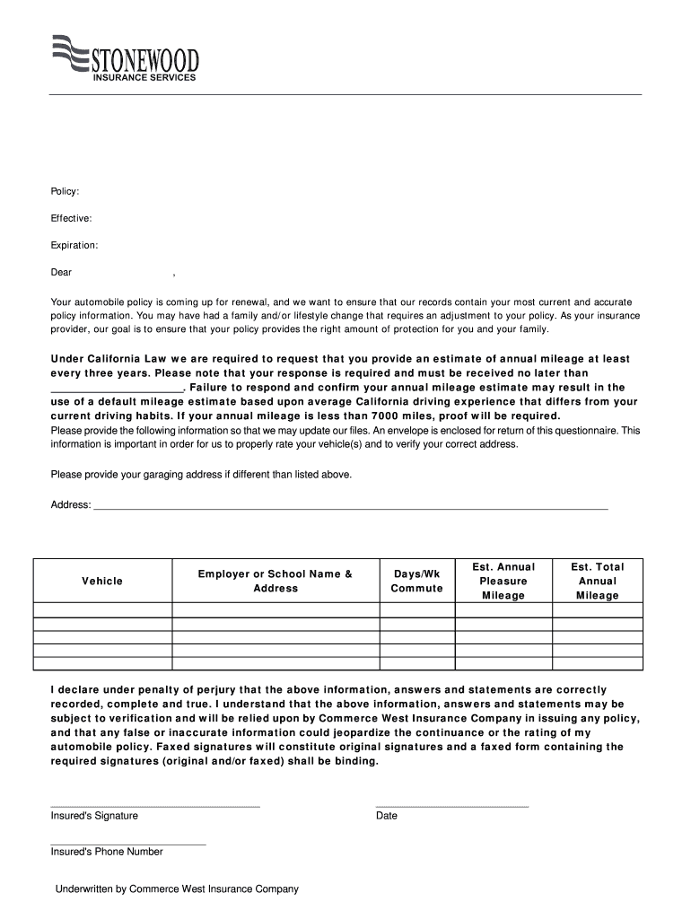 Policy: Effective: Expiration: Dear, Your automobile policy is coming up for renewal, and we want to ensure that our records contain your most current and accurate policy information. You may have