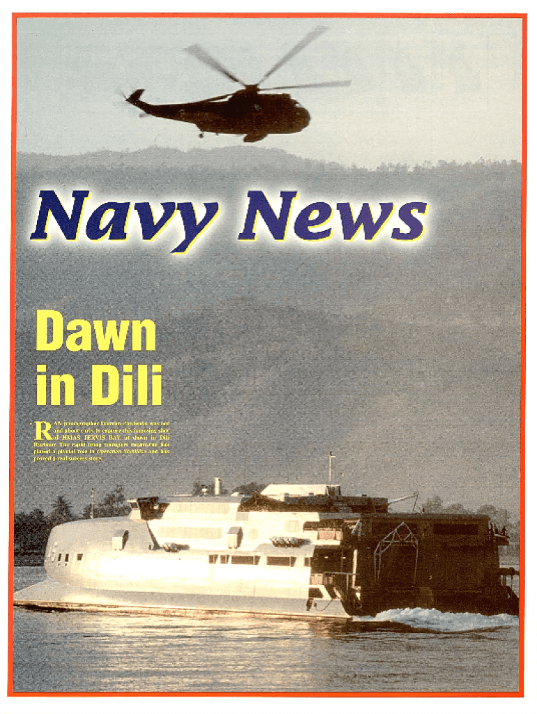 This document contains various articles related to the Royal Australian Navy, including news about personnel, events, and training updates.