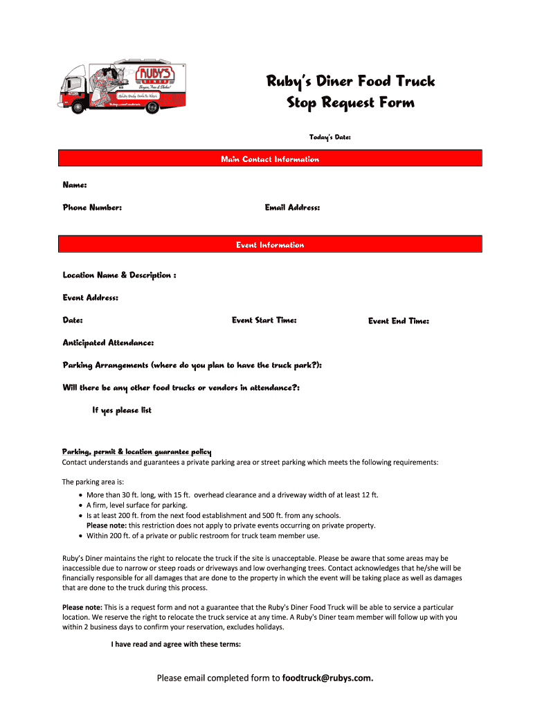 Get the free Rubys Diner Food Truck Stop Request Form
