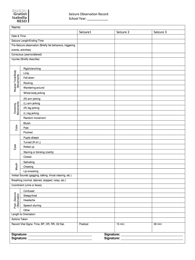 Get the free Seizure Observation Record School Year