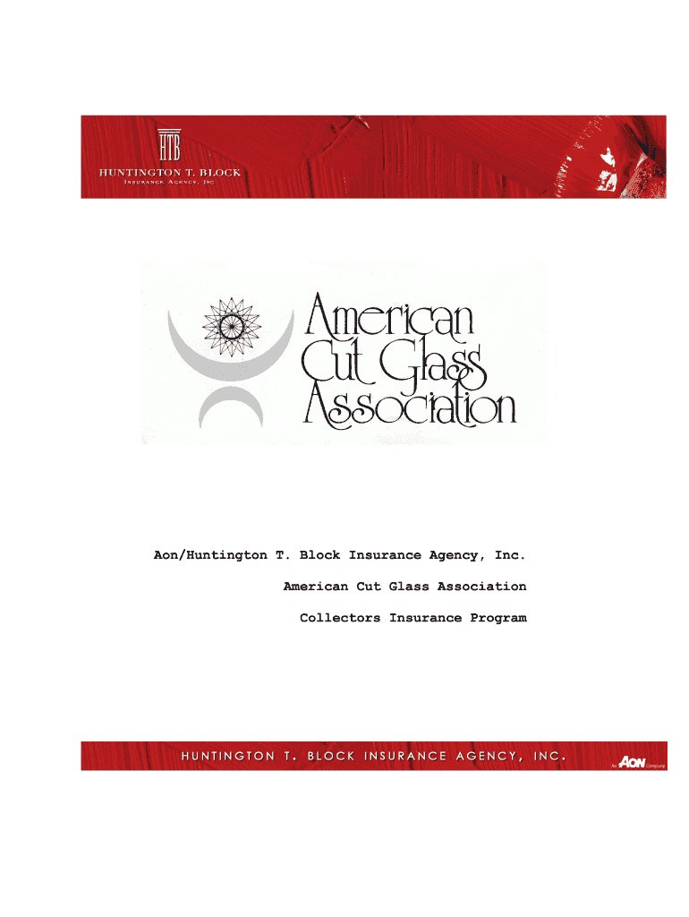 Aon/Huntington T. Block Insurance Agency, Inc. American Cut Glass Association Collectors Insurance Program Huntington T. Block Insurance Agency is pleased to be selected by the American Cut Glass