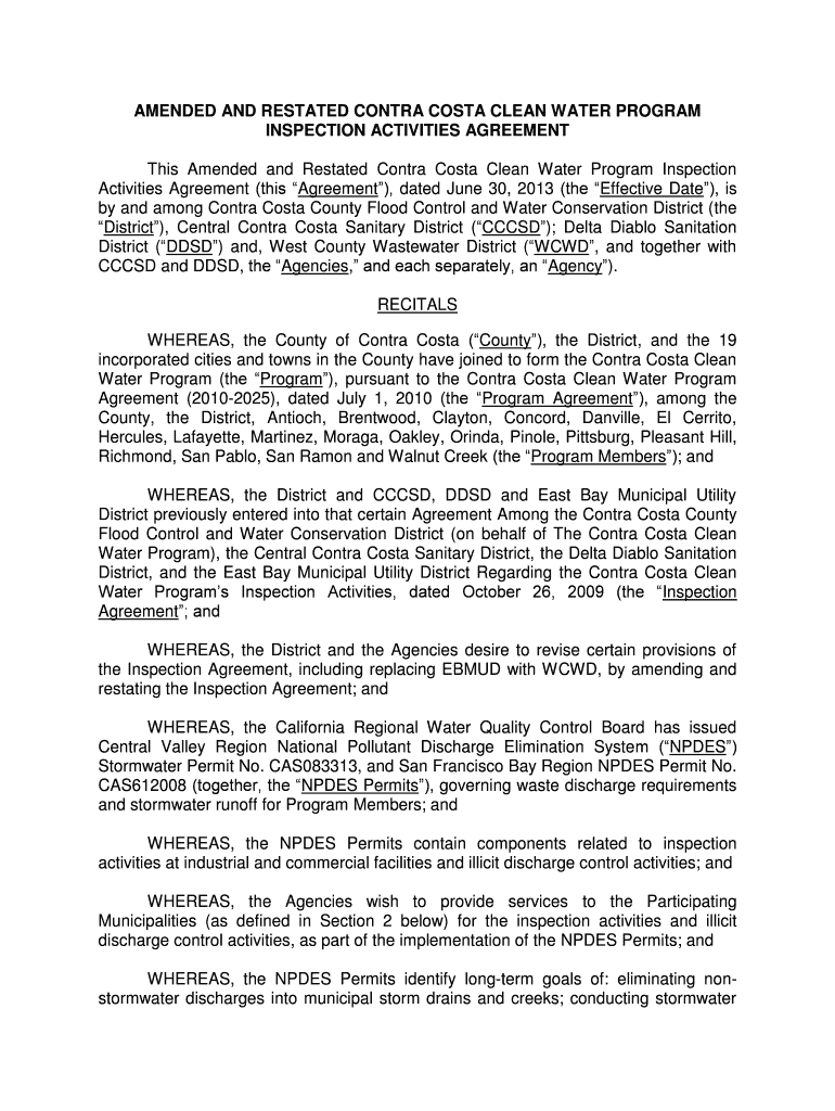 This Amended and Restated Contra Costa Clean Water Program Inspection