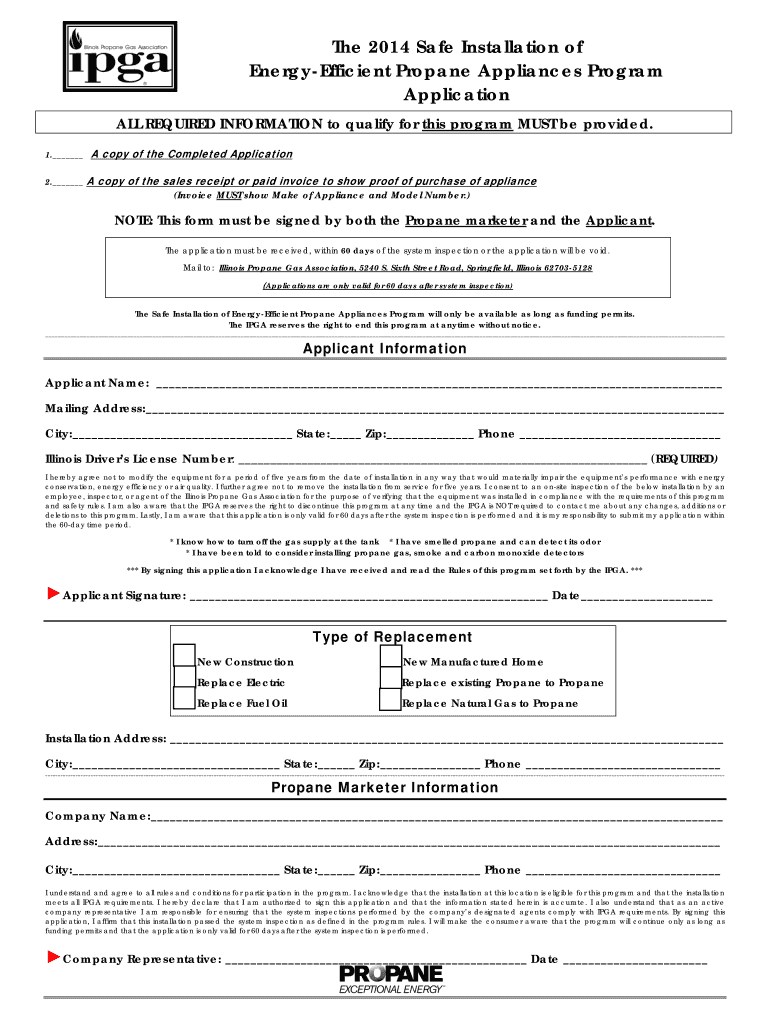The 2014 Safe Installation of EnergyEfficient Propane Appliances Program Application ALL REQUIRED INFORMATION to qualify for this program MUST be provided. 1. 2. A copy of the Completed Application