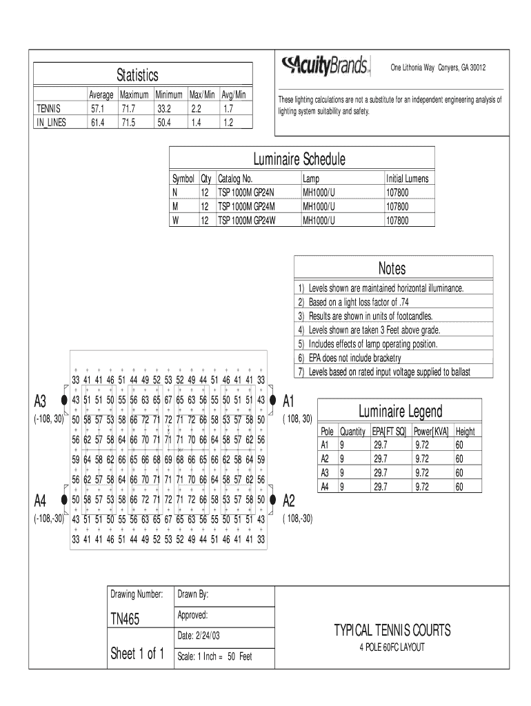 One Lithuania Way Confers, GA 30012 Statistics TENNIS IN LINES Average Maximum 57.1 71.7 61.4 71.5 Minimum Max/Min 33.2 2.2 50.4 1.4 Avg/Min 1.7 1.2 These lighting calculations are not a substitute