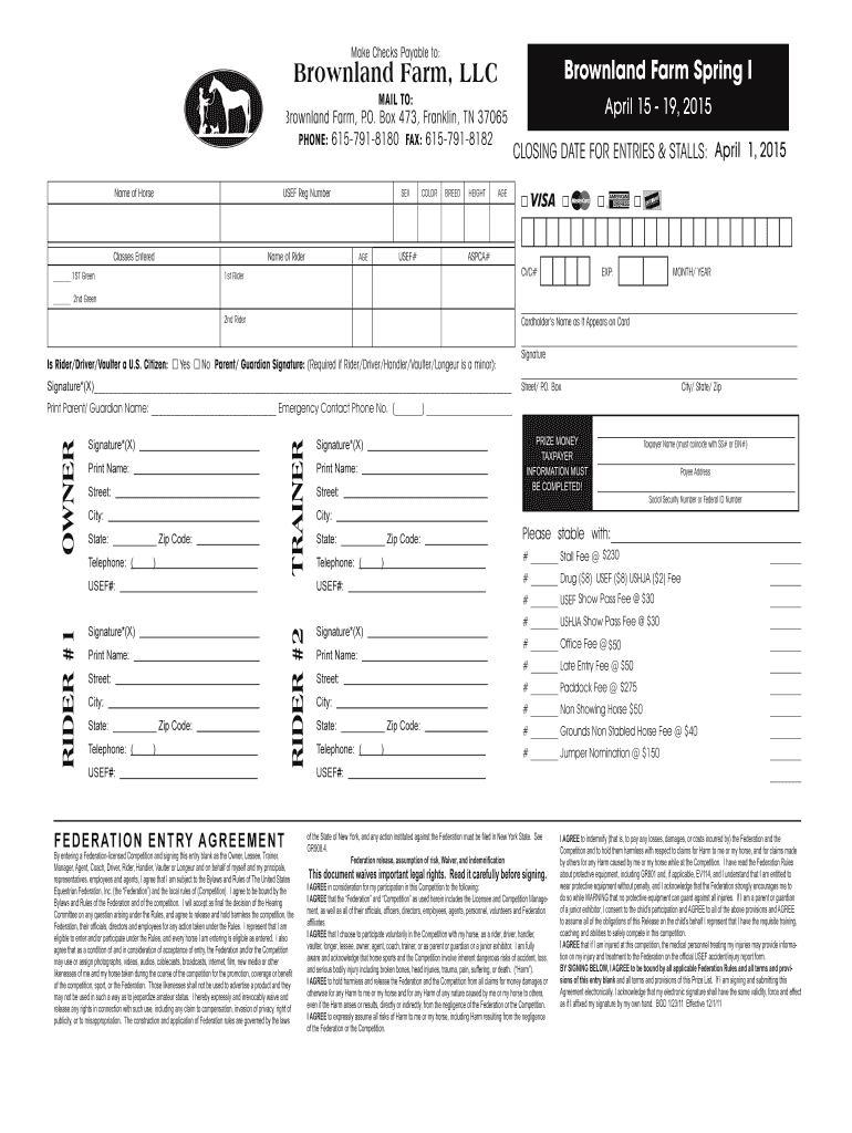 Make Checks Payable to: Make Checks Payable to: Brown land Farm Summer BrownlandFarm, LLC Farm, LLC Brown land Farm Spring I Farm, LLC Brown land FarmMidSouth Classic Summer Make Checks Payable to:
