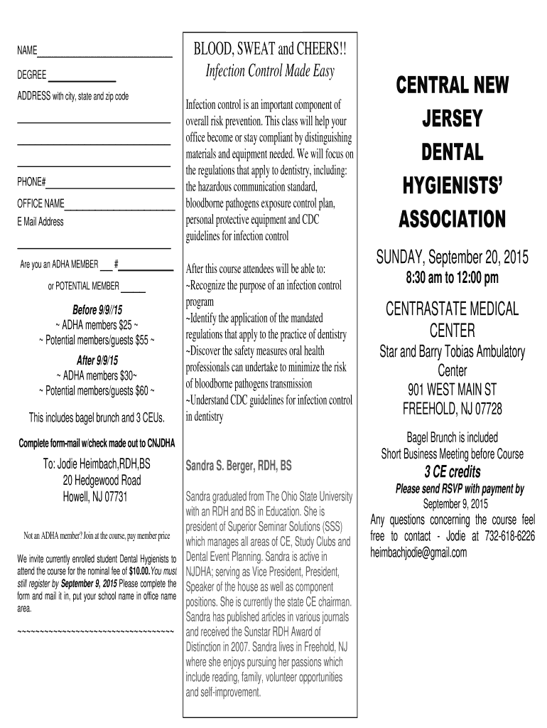 DEGREE NAME ADDRESS with city, state and zip code PHONE# OFFICE NAME E Mail Address Are you an ADA MEMBER # or POTENTIAL MEMBER Before 9/9//15 ADA members $25 Potential members/guests $55 After 9/9/15