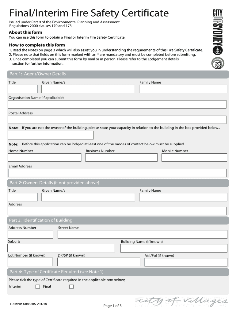 To obtain the Final/Interim Fire Safety Certificate, certain eligibility criteria must be met. Buildings in New South Wales must comply with specific fire safety regulations to qualify. Necessary documentation typically includes detailed architectural plans and proof of completed safety measures.