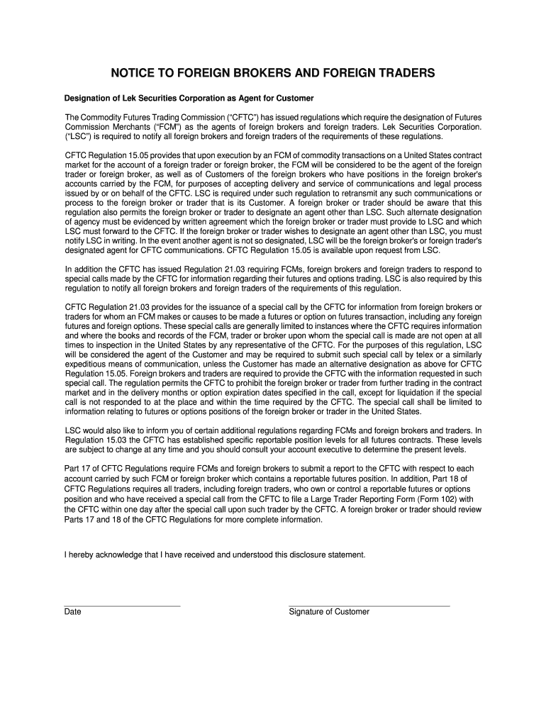NOTICE TO FOREIGN BROKERS AND FOREIGN TRADERS