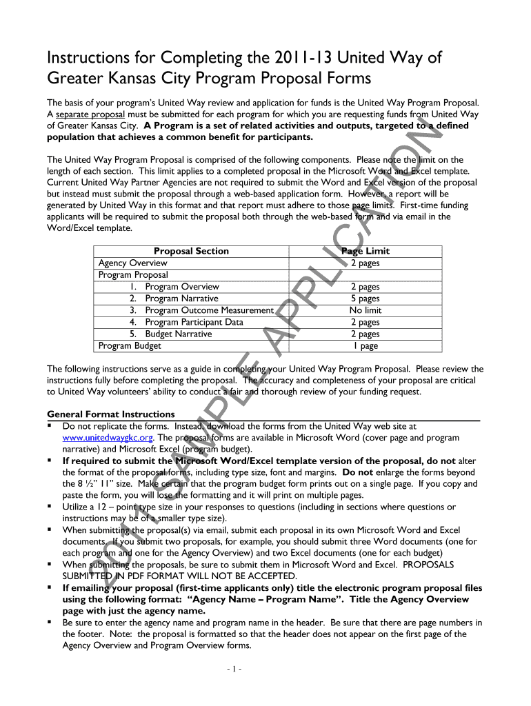 These instructions provide a comprehensive guide for completing the United Way Program Proposal, detailing the necessary components, format requirements, and submission guidelines for agencies applying
