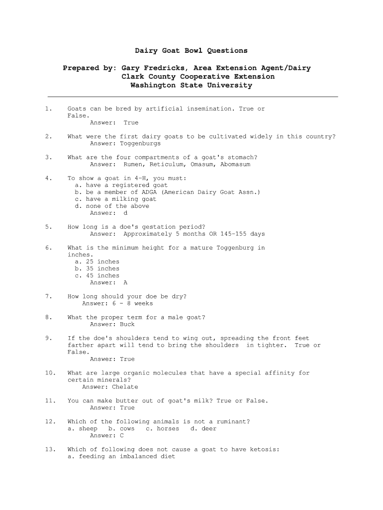 Fill out your dairy goat bowl questions online with pdfFiller!