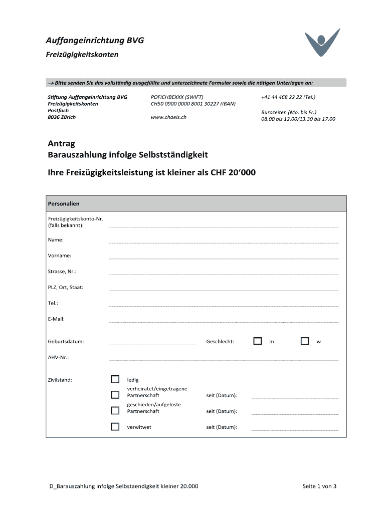 Auffangeinrichtung BVG Freizgigkeitskonten Bitter sender She was vollstndig ausgefllte UND unterzeichnete Formula Bowie die antigen Undertaken an: Shifting Auffangeinrichtung BVG Freizgigkeitskonten