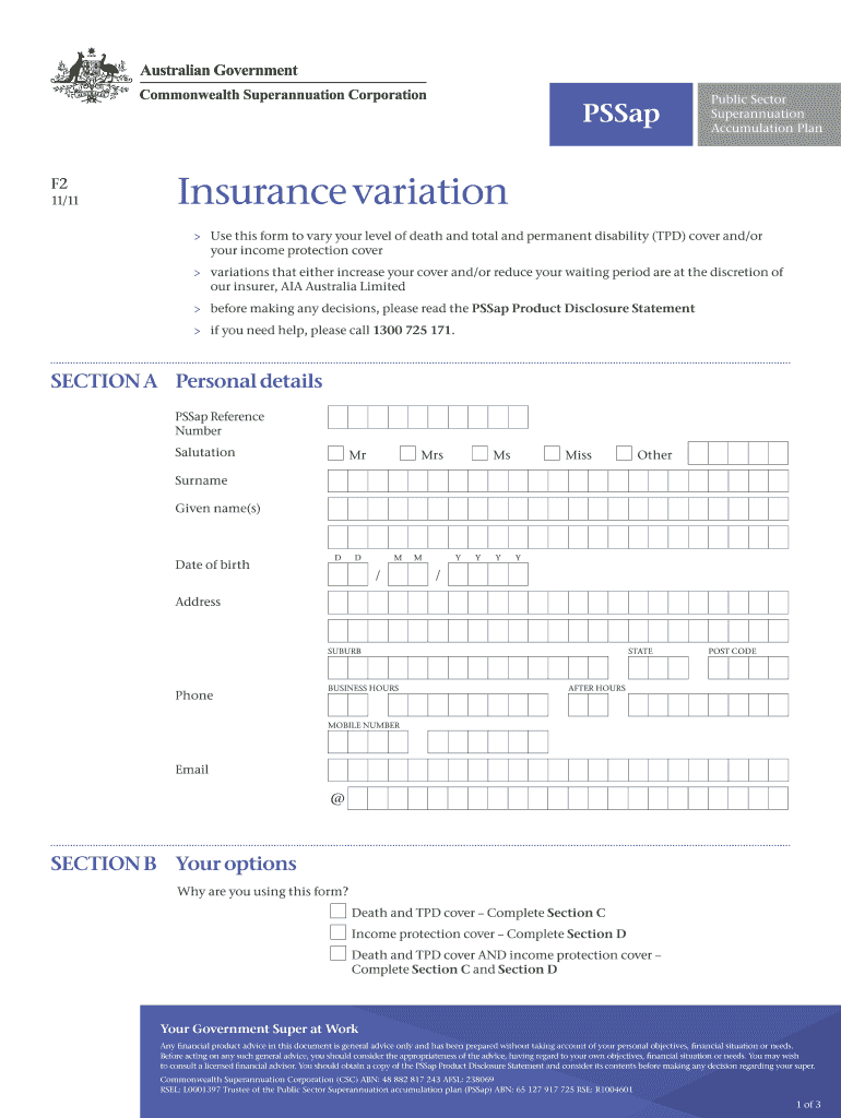 This form is used to vary death and total and permanent disability (TPD) cover and/or income protection cover, includes instructions for the changes and necessary disclosures.