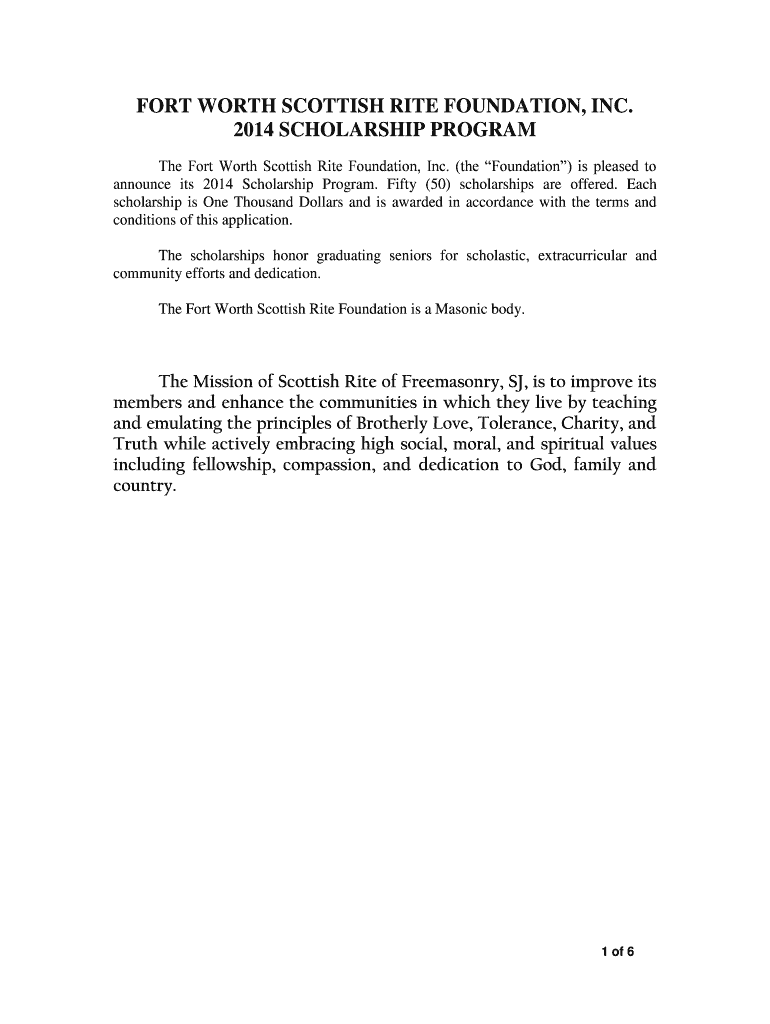 The Fort Worth Scottish Rite Foundation, Inc. (the Foundation) is pleased to