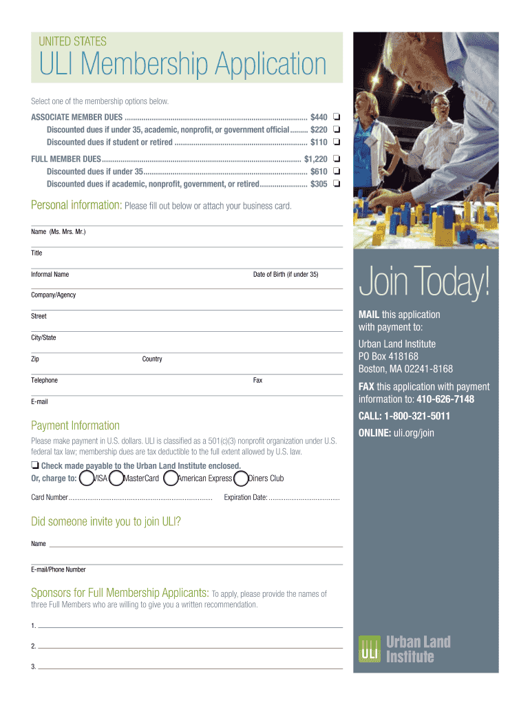 ULI members who wish to take advantage of the benefits offered by the organization are required to file for membership benefits.