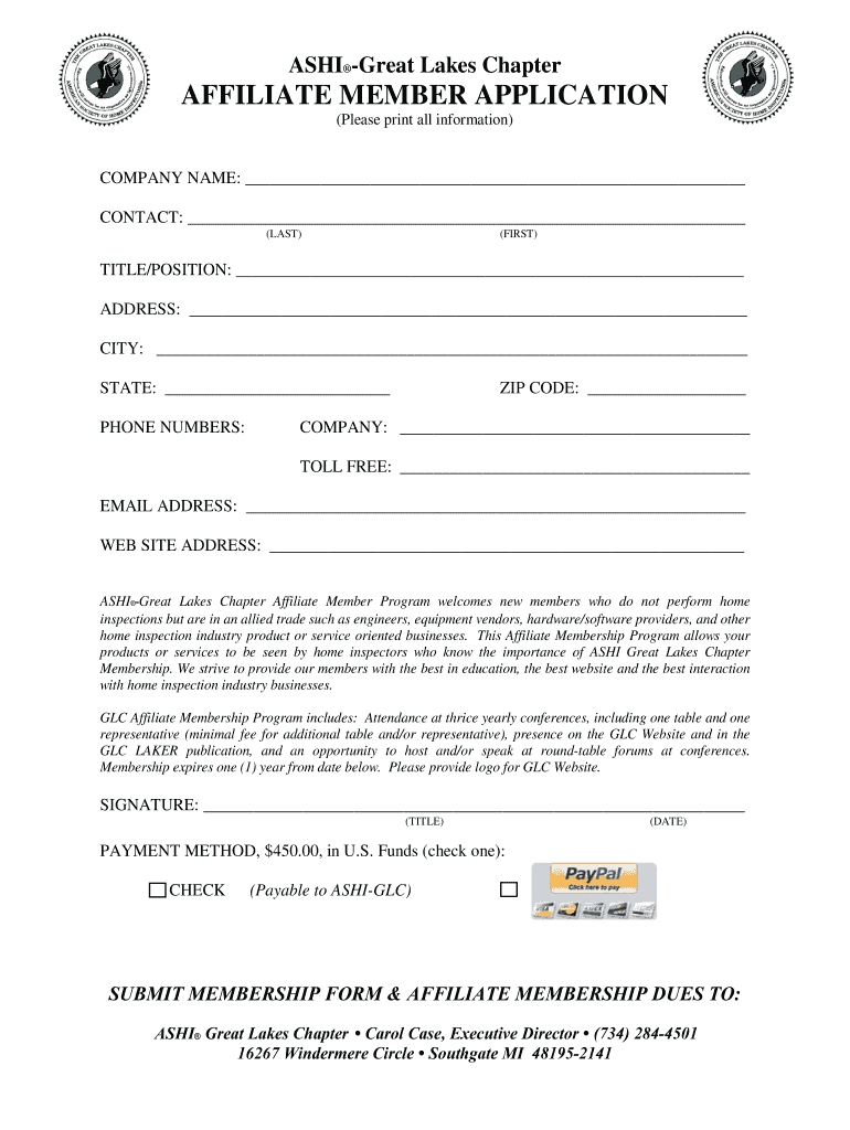 Get the free ASHI -Great Lakes Chapter AFFILIATE MEMBER APPLICATION