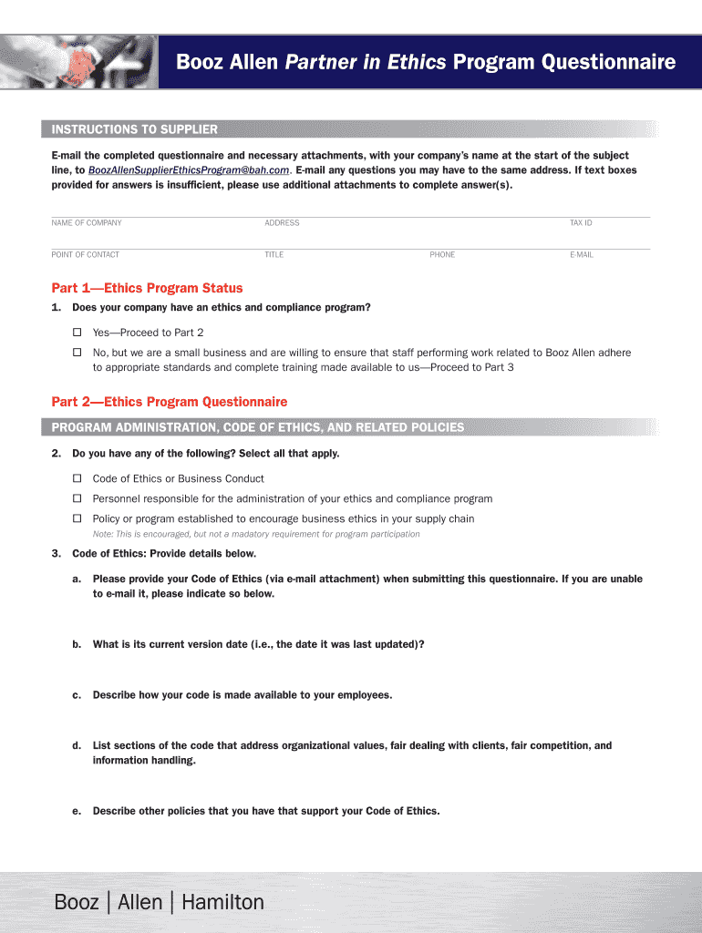 Get the free Booz Allen Partner in Ethics Program